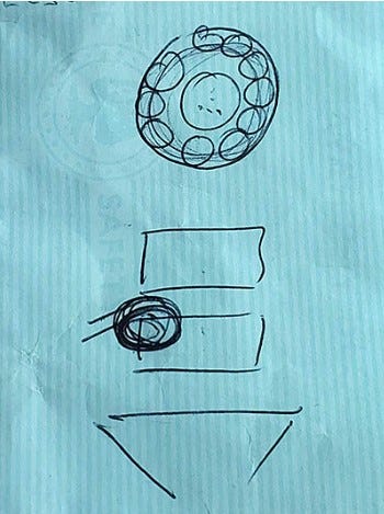 This drawing is the doctor’s rendition of my spine